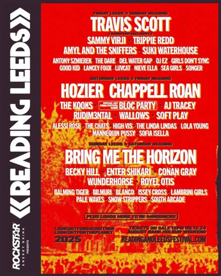 The most recent full lineup for Reading and Leeds Festival is below: