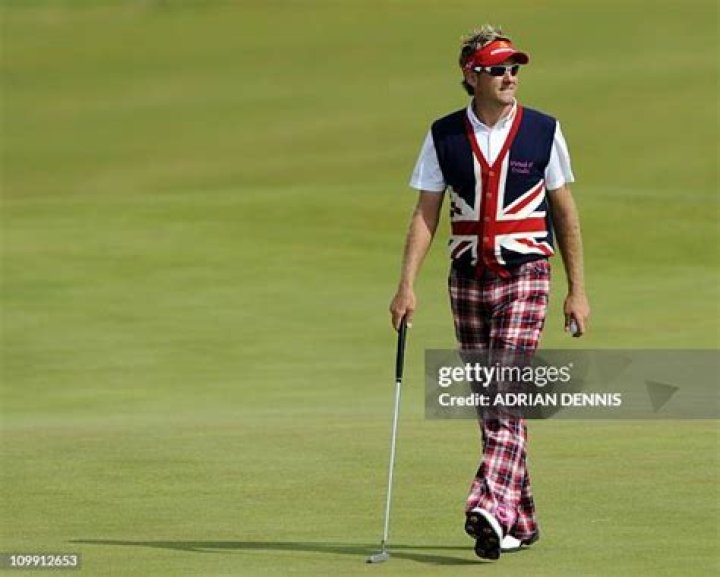 Poulter is well known for his eccentric dress sense, inspired by his mother, who managed the Letchworth branch of UK women’s fashion chain Dorothy Perkins. His most famous pieces include trousers featuring the famous Claret Jug, worn at both the 2005 and 2006 Open Championships. Commentating for the BBC, Seve Ballesteros jibed that this was “the closest [Poulter] would ever get to it”.
