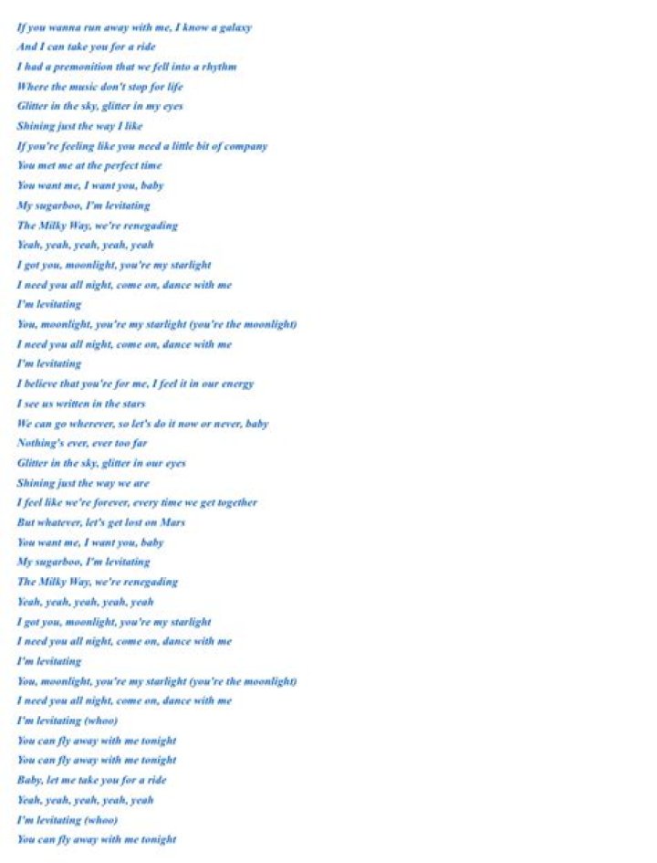 LYRICS: Dua Lipa – Levitating