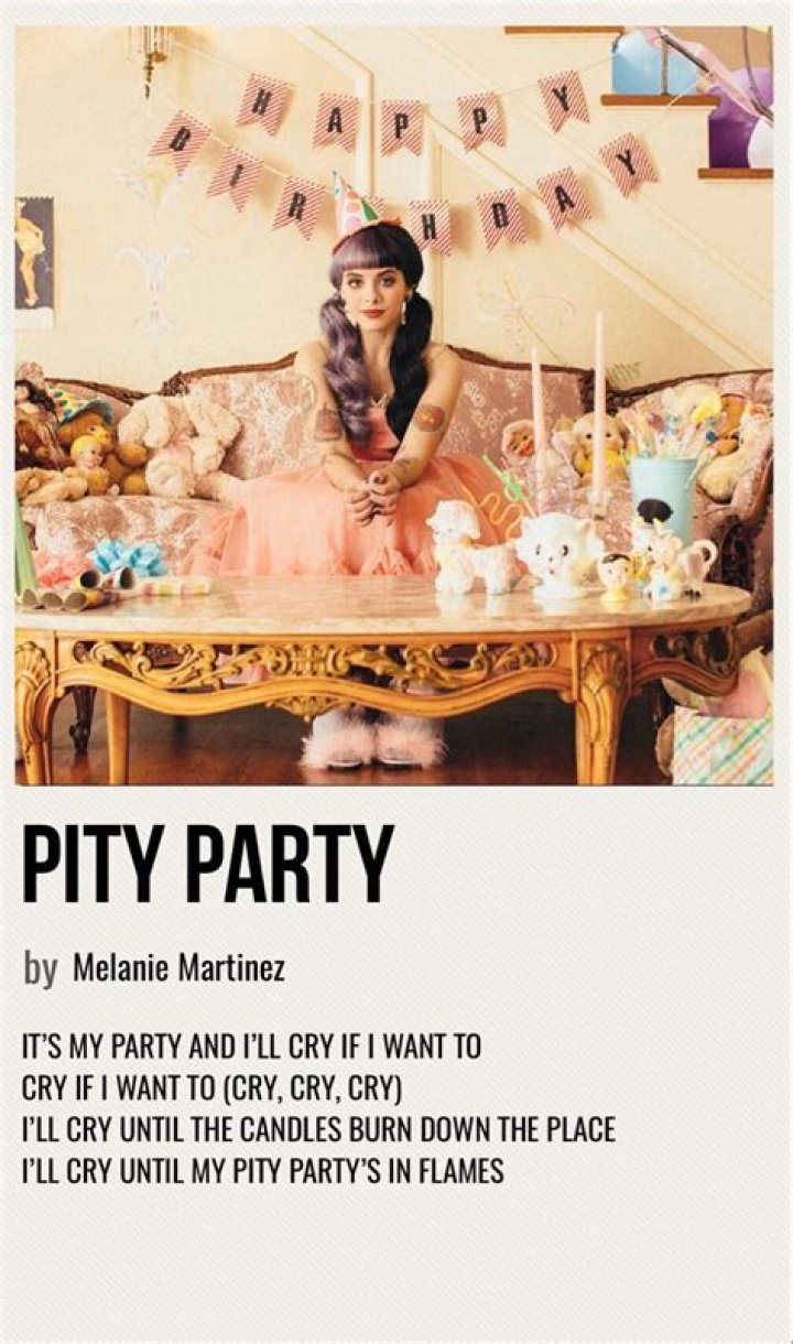 Melanie has said that Pity Party marks a turning point for her character Crybaby within the album. When no one shows up to her birthday party, she starts to go slightly crazy, which is especially evident in the next two songs on the album- Tag you’re it and Milk and Cookies.