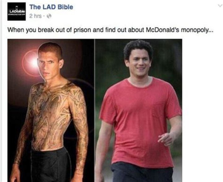 The meme in question shows a side-by-side body comparison of Wentworth and is body shaming in its purest form. The meme is captioned “when you break out of prison and find out about McDonald’s monopoly,” poking fun at Wentworth’s weight gain in the second picture from 2010.