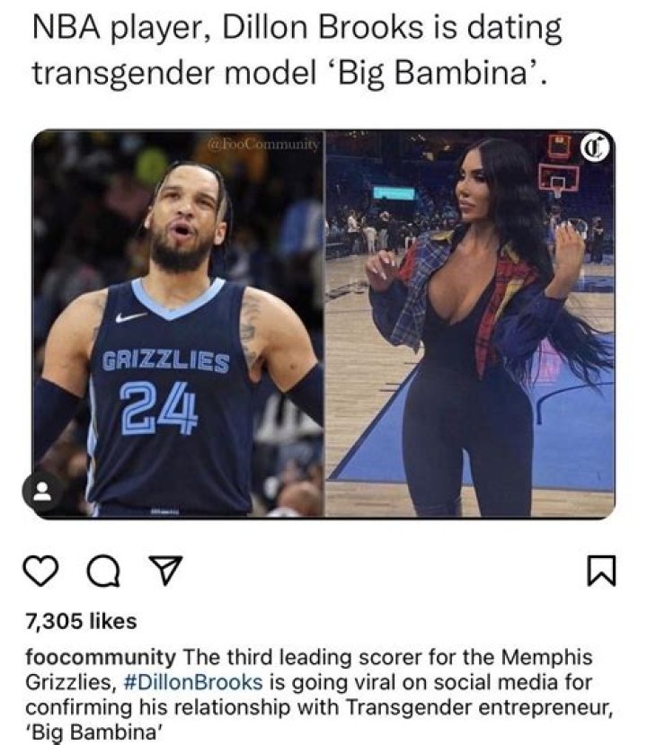 The whole internet source is full of news about the Canadian professional basketball player Dillion Brooks and his new partner, Big Bambina, who is a famous transgender woman.