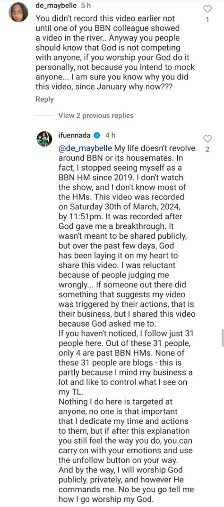 Reacting to her video, her colleague, Uche Jumbo wrote; ‘Sake I wish they didn’t get a reaction from you just because it’s what they want. You are beautiful in every single way, words can’t change that. No be you make fuel situation bad.’